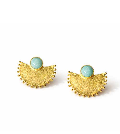Azura | 24K Altın Kaplama Amazonit Taşlı Özel Tasarım Küpe